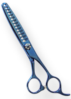 Product: Thinning Shear 6.5" Detail: Thinning Shear 15-Teeth Size 6.5" Blue Titanium Coated Finish, Diamond Adjustable screw, Packed in colored triangle PVC pouch with hanging hole.