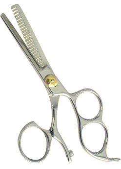Product: Comfort Thinning Shear 5.5" Detail: Comfort Control Thinning Hair Shear 24-Teeth Size 5.5" with Swivel thumb Ring, Bright Mirror Finish made of Stainless Steel, Packed in colored triangle PVC pouch with hanging hole.