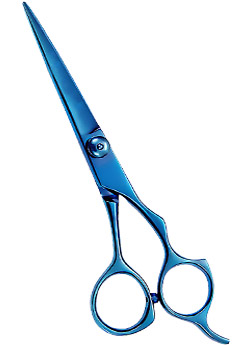 Product: Razor Edge Hair Shear 6" Detail: Razor Edge Hair Shear Size 6" Blue Titanium Coated Finish with Adjustable Screw and Finger Rest, Made of Stainless Steel, Packed in Colored Triangle PVC Pouch.