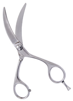 Product: Razor Edge Hair Shear 6" (Banana Shape) Detail: Banana Shape Razor Edge Hair Shear Size 6" Bright Mirror Finish with Adjustable Screw and finger rest, Made of Stainless Steel Packed in Colored Triangle PVC Pouch.