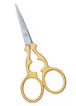 Product: Fancy Cuticle Nail Scissors 3.5" Detail: Fancy Cuticle Nail Scissors 3.5" Half Gold Platted Finish, Made of Stainless Steel, Packed in colored PVC pouch with hanging hole.
