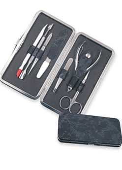 Product: 7-Pcs Manicure Set Detail: 7-Pcs Manicure Set Packed in Black Synthetic Leather Zipper Case.