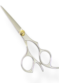 Product: Razor Edge Hair Shear 5.5 Detail: Razor Edge Hair Shear Size 5.5 Bright Mirror Finish with Golden Screw made of Stainless Steel Packed in Colored Triangle PVC Pouch.