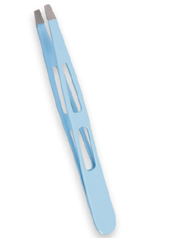 Product: Slanted Tip Tweezers Detail: Slanted Tip Tweezers Perfect for Removing Ingrown Hair Size 3.75" Light Blue Color Coated Finish, Made of Stainless Steel, Packed in colored PVC pouch with hanging hole.