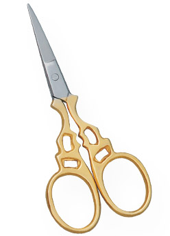 Product: Fancy Cuticle Nail Scissors 3.5" Detail: Fancy Cuticle Nail Scissors 3.5" Half Gold Platted Finish, Made of Stainless Steel, Packed in colored PVC pouch with hanging hole.
