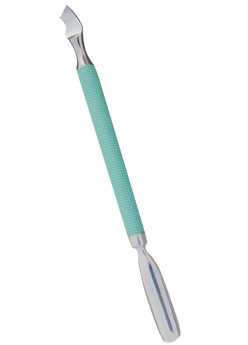 Product: Cuticle Nail Pusher Detail: Dual Sided Cuticle Nail Pusher with smooth grip, Two Tone Finish, Made Stainless Steel, Packed in colored PVC pouch with hanging hole.